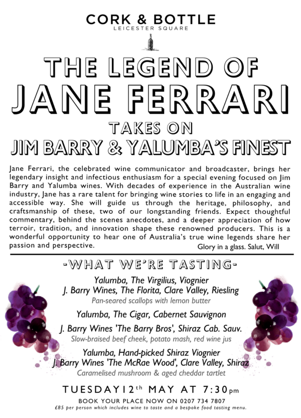 The Legend of Jane Ferrari – Wine Tasting Dinner